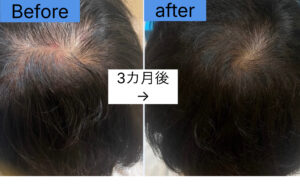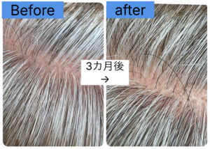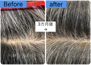 このケースでは、「白髪がなくなった」というより、白髪が主張しにくい環境に整ってきたという表現が近い状態です。それでも白髪は少なくなってきていると明るく笑っていおただきました。
