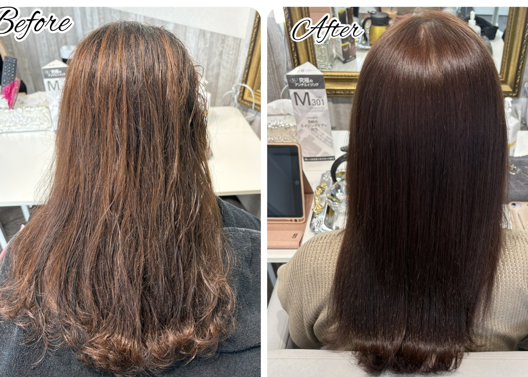 「乾かすだけで艶が戻る」大人女性の縮毛矯正施術例を詳しく紹介しています。 - 髪質改善トリートメントについて