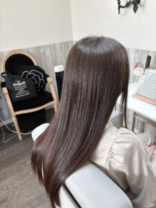 エイジング毛専用の薬剤で、硬くならず柔らかいストレートに仕上げます。