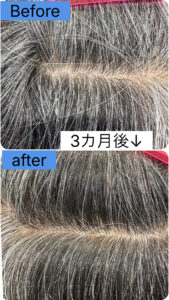 日々の扱い方も見直しながら、3ヶ月前から毛髪再生スパメニューへ移行したケースです。